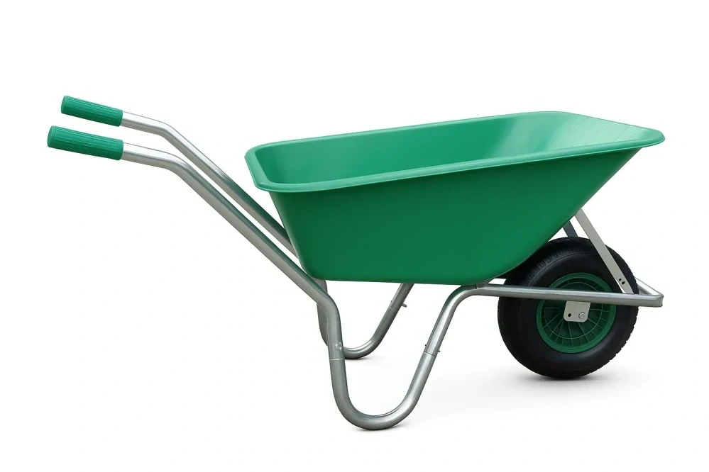 Konštrukcia je vyrobená z kvalitnej ocele a je kompletne pozinkovaná, čo zabezpečuje vysokú odolnosť voči korózii aj vlhkosti – ideálne riešenie na použitie za každého počasia. Vďaka nafukovaciemu kolesu s kovovým stredom je manipulácia jednoduchá aj v náročnejšom teréne.