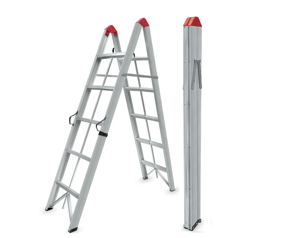 Použitie - Pred použitím jednoducho otvorte rebrík v oboch smeroch a uistite sa, že sú všetky priečky zaistené. Po ukončení práce, je možné ľahko zložiť do veľmi malého rozmeru o šírke 7 cm a hrúbke 13 cm.